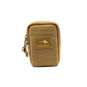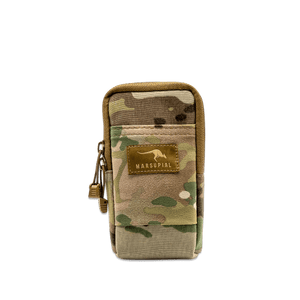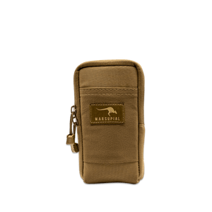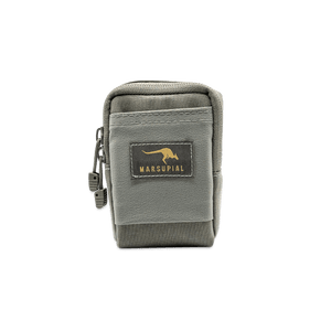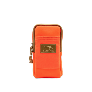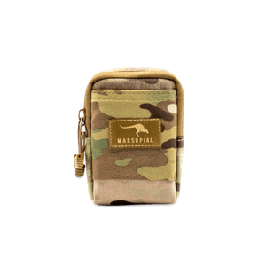 Designed to hold all of your small necessities in the field, the Marsupial Gear  Zippered Pouch is the perfect way to add storage to your Binocular Pack system. The pouch attaches directly to the Binocular Pack, keeping your essentials readily available for quick access. The pouch can be attached to any belt or webbing using a snap-release 1" structured piece of webbing. The pouch has elastic loops inside to hold a few rounds of ammo. The exterior has a small front stretch slot pocket, perfect for holding reed calls.