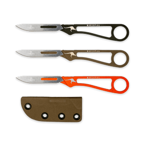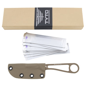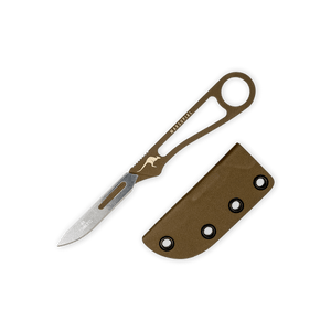 The Finisher Ti features a grade 5 Titanium that's so light you'll barely notice you're carrying it. The Cerakote finish protects your favorite color from scratches and marks for a lifetime of use. At only 5” inches long it will fit perfectly in your bino harness. Includes a Kydex sheath.