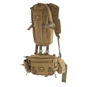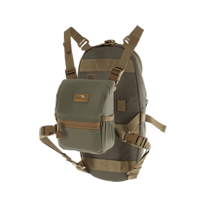 The Hydration Pack was designed to attach to multiple products in multiple ways. Use any Marsupial Gear harness (standard webbing or padded mesh) to run through the webbing channels on the back of the Hydration Pack or use the included (4) 1" straps to replace your harness and connect the Hydration Pack directly to any Marsupial Gear chest pack. The Hydration pack can also attach to the Marsupial Gear Modular Yoke to be used with the Modular Belt System or as a standalone hydration pack. With the additional storage, the Hydration Pack makes the perfect final approach pack when stalking an animal.
