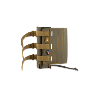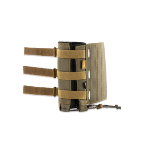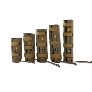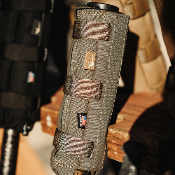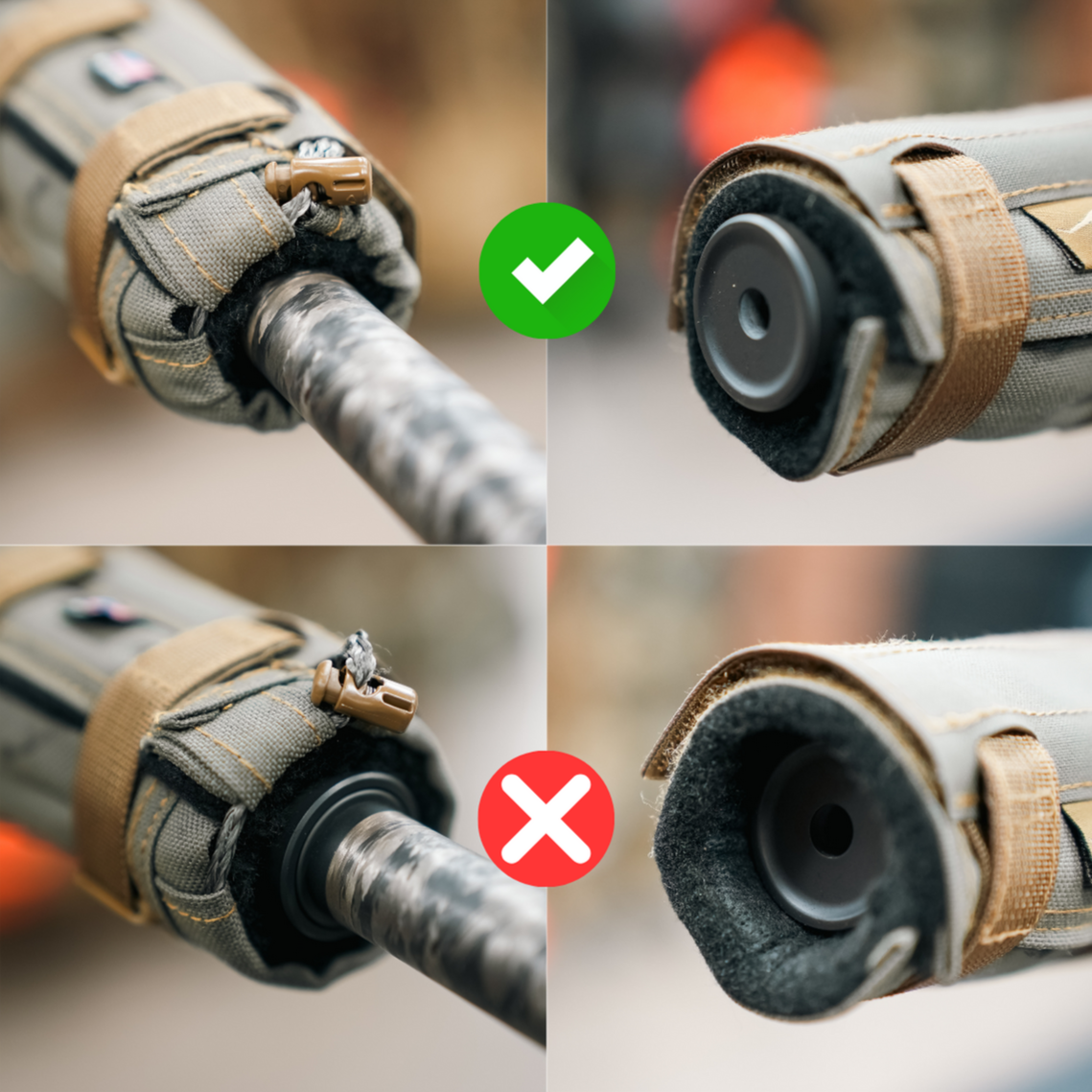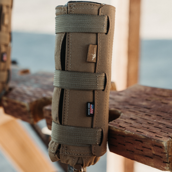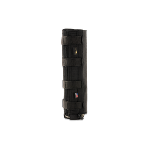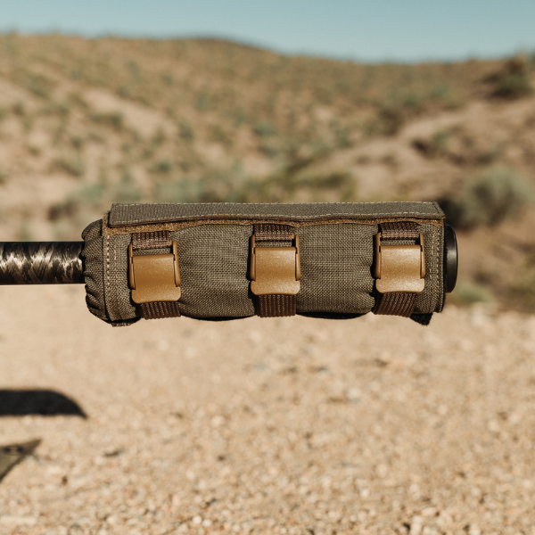 To keep the cover firmly in place, it features low-profile cam buckles that securely cinch around your suppressor without adding bulk. A protective velcro flap neatly hides any excess webbing and cordage, giving it a clean, streamlined look that is snag-free. At the rear, a cinch collar prevents forward sliding, keeping the cover locked exactly where you want it, shot after shot.