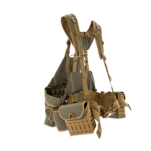Roam the Pheasant fields and Chukar hills with the most durable vest on the market. Built on our Modular Belt base, the Upland Vest is designed to be the perfect setup for a long day in the field chasing birds. Easily carry all of your gear and a full limit of birds with the load lifter straps that attach to our Modular Yoke. Affixed with our Upland Rear Bird Bag, two shotgun shell pouches, and two water bottle pouches, you will have plenty of storage for the essentials. Our MOLLE covered Upland Bag allows you to add additional storage for even more hunting necessities. This is the most customizable platform on the market so that you can build your vest to your needs.